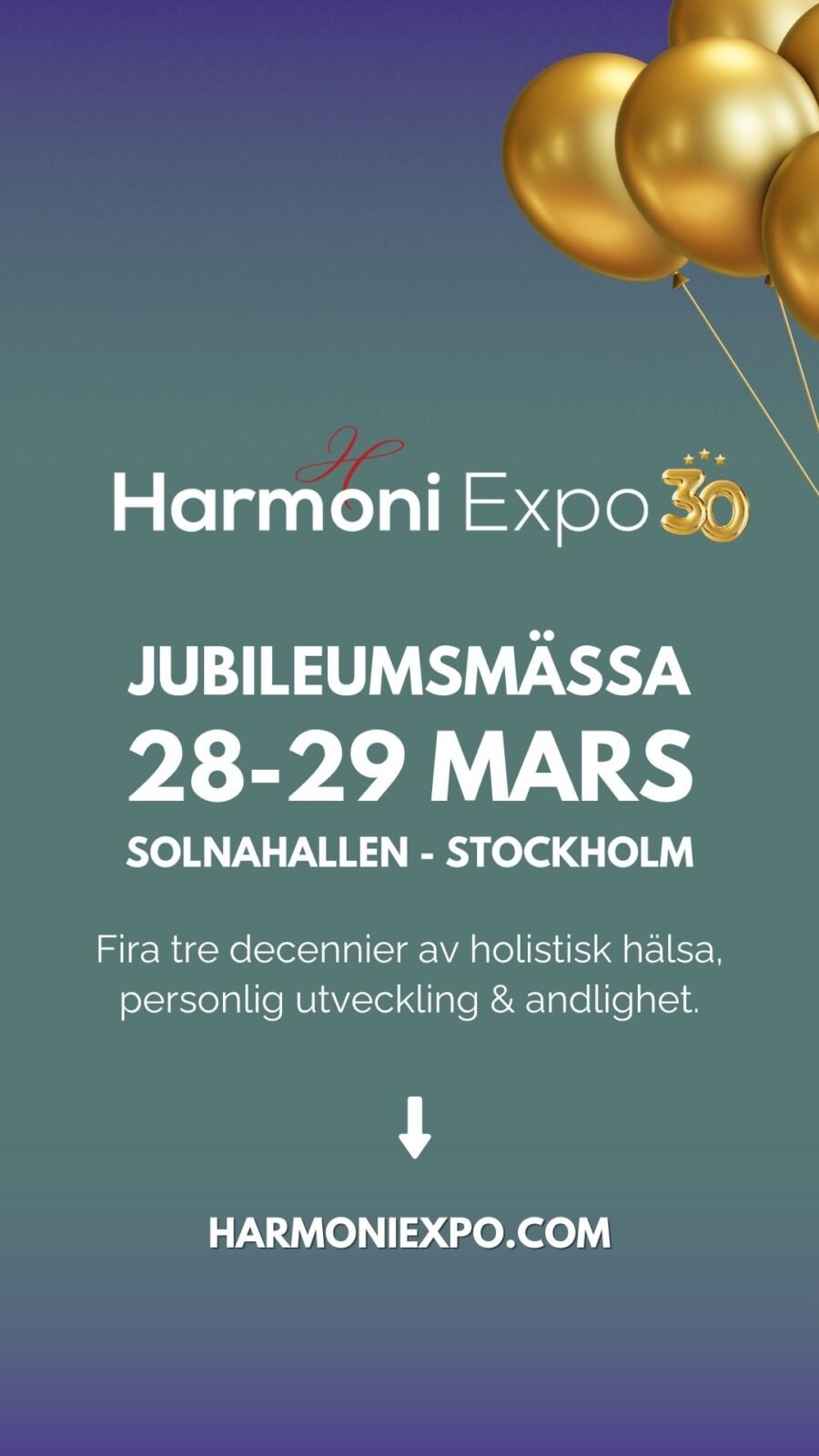 Exempel: #harmoniexpo #harmoniexpo2026 #HarmoniExpoJubileum #reikihealing #kroppochsjäl #healingsverige